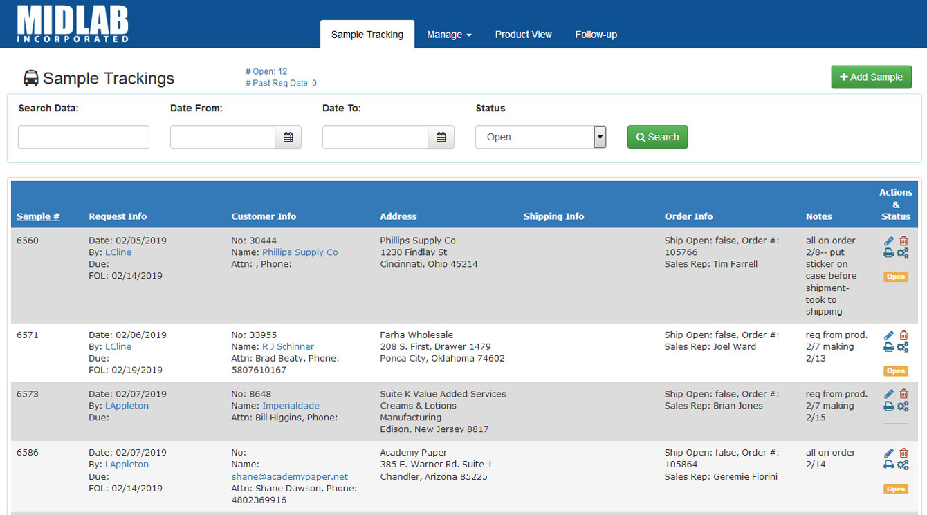 Sample Trackings