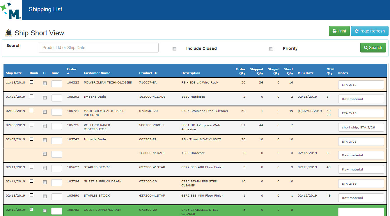 Shipping List